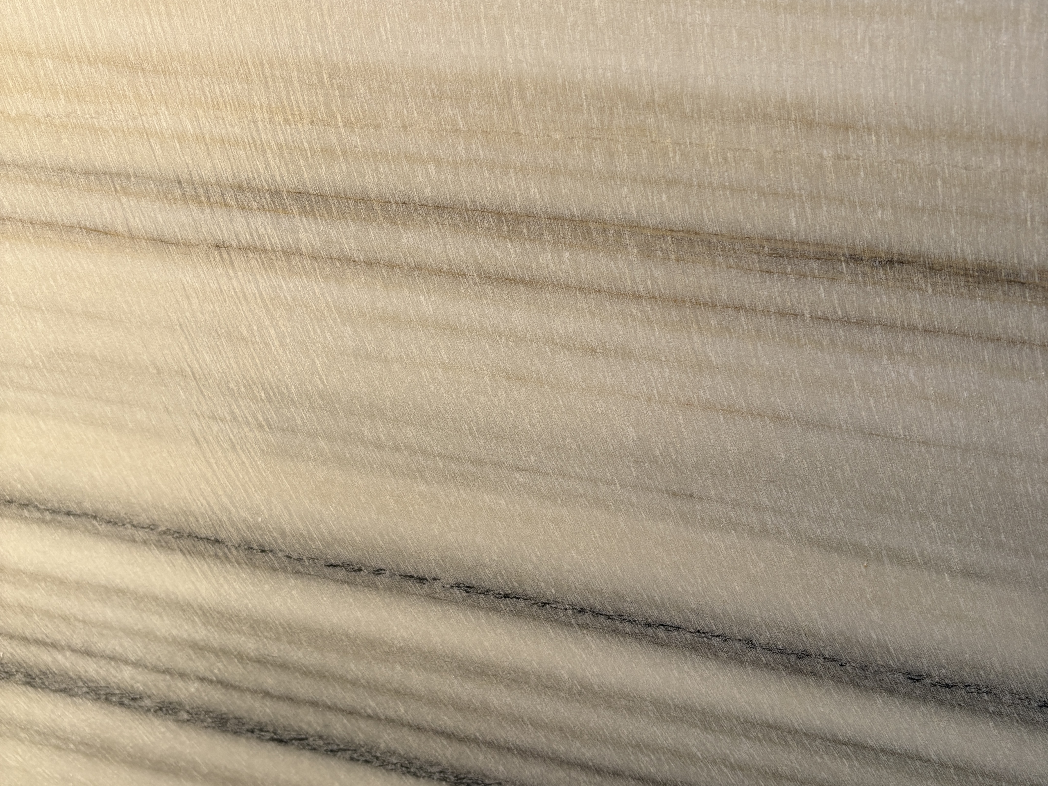 Ivory background with parallel dark and light hazel colored veins, with some variations tending towards green.